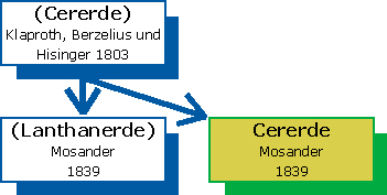 Nach der Entdeckung der Ceriterde im Cerit, dem »schweren Stein von Bastnäs«, fand man Cer auch in anderen Mineralen, so z.B. dem Allanit aus Grönland oder dem Yttrocerit aus Schweden. Cerit hat - so weiß man heute - die Zusammensetzung (Ca,Mg,Fe2+)2(Ce,La,Nd)8[SiO4]7 · 3 H2O. Dass neben Cer noch andere Seltenerdmetalle im Cerit enthalten sind, wusste man zu dieser Zeit noch nicht, auch nicht, dass Gadolins Yttererde kein reines Yttriumoxid darstellt. Dazu mussten noch über dreißig Jahre ins Land gehen. Die Ausgangsmaterialien für weitere Untersuchungen aber standen mit dem Gadolinit aus Ytterby und dem Cerit aus Bastnäs bereit. Die endgültige Klärung der Zusammensetzung von Yttererde und Ceriterde sollte die Chemiker noch über ein Jahrhundert lang beschäftigen.