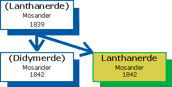 Carl Gustav Mosander, ein Assistent von Berzelius, war der erste, der einen Hinweis darauf lieferte, dass sich hinter den bis dahin bekannten »seltenen Erden« eine Vielzahl von Elementen »versteckte«. Durch Behandlung von Cersalzen mit Königswasser erhielt er in der löslichen Fraktion eine neue Substanz, der er den Namen »lanthana« (nach griech. »das Verborgene«) gab.