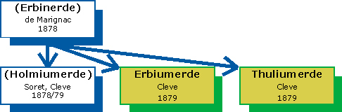 1878/79 entdeckte Jacques-Louis Soret durch spektroskopische Untersuchung der Erbinerde ein neues Element und nannte es »Element X«. 1879 konnte Per Theodor Cleve zeigen, dass die Erbinerde de Marignacs in Wirklichkeit zwei weitere Erden enthielt: die Holmiumerde (identisch mit dem »X« Sorets) und die Thuliumerde. Reines Thuliumoxid wurde erstmals 1911 von Charles James erhalten.