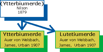 Im Jahr 1907 schließlich zeigte Carl Auer von Welsbach, dass Nilsons Ytterbiumerde wiederum aus zwei Erden bestand. Die dazugehörigen Elemente nannte er Aldebaranium (= Ytterbium) und Cassiopeium (= Lutetium). Im gleichen Jahr zerlegte auch der französische Chemiker Georges Urbain die Ytterbiumerde und nannte die beiden Elemente Neo-Ytterbium (= Ytterbium) und Lutetium. Obwohl Auer von Welsbachs Veröffentlichung über seine Entdeckung vor derjenigen Urbains erschien, folgte das für die Namensvergabe zuständige Chemiker-Gremium »International Committee on Atomic Weights« dem Namensvorschlag Urbains, weil Urbain seinen Report bereits früher an den Herausgeber der Zeitschrift geschickt hatte. Urbain war eines von vier Mitgliedern des Komitees. Unabhängig von Auer von Welsbach und Urbain hatte auch Charles James, Professor in New Hampshire/USA, zur Zeit der Verkündung der Entdeckung des Lutetiums bereits einen größere Menge eines Lutetiumpräparats hergestellt. Bis auf das Promethium waren nunmehr alle Seltenen Erden entdeckt.